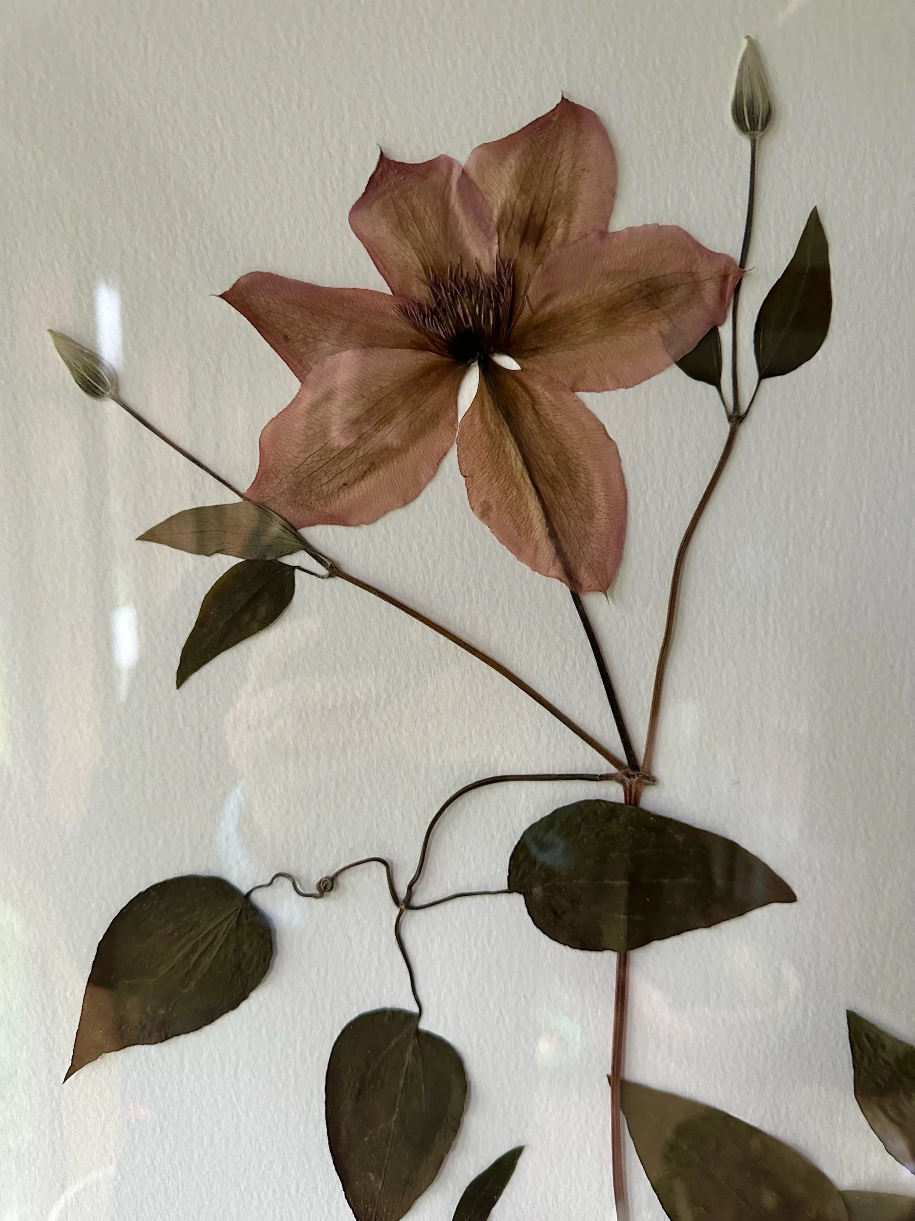 Shop › Large Framed Pink Clematis Image 1 of 7 Image 2 of 7 Image 3 of 7 Image 4 of 7 Image 5 of 7 Image 6 of 7 Image 7 of 7 Large Framed Pink Clematis £250.00 Pressed large pink clematis Framed in a VINTAGE black frame in 2025This will fade gradually over time 54 x 71cm Add To Cart Added! Pressed large pink clematis Framed in a VINTAGE black frame in 2025This will fade gradually over time 54 x 71cm