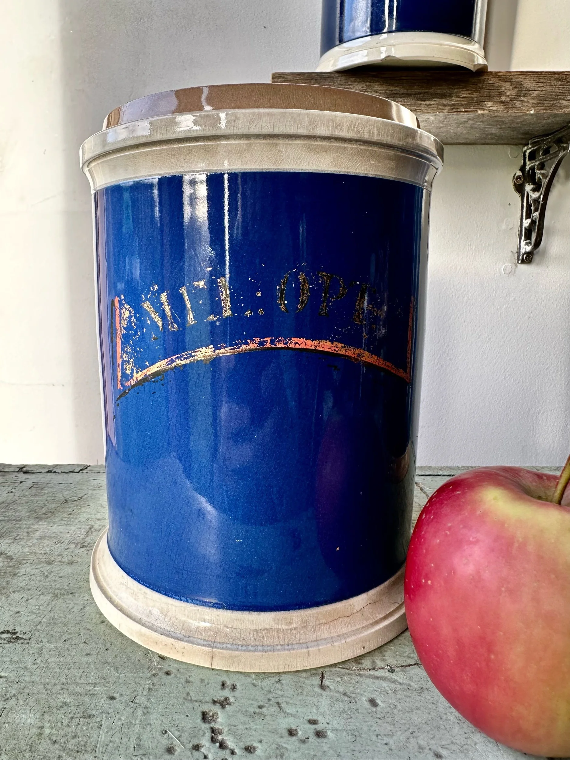 Shop › Antique Blue Apothecary Jar with Label Image 1 of 5 Image 2 of 5 Image 3 of 5 Image 4 of 5 Image 5 of 5 Antique Blue Apothecary Jar with Label £60.00 Beautiful large blue apothecary jar with remnants of gold original label18cm high14cm across Add To Cart Added! Beautiful large blue apothecary jar with remnants of gold original label18cm high14cm across